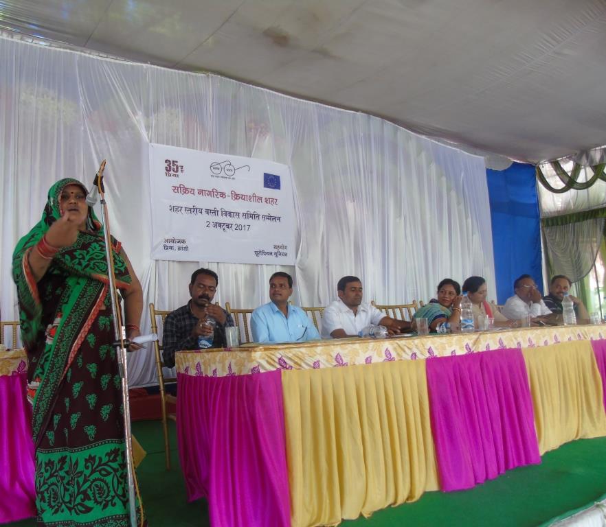 कार्यक्रम में अलग – अलग क्षेत्रों से आये एस. आई. सी. सदस्यों ने भी अपने–अपने बस्तियों के अनुभव साँझा किये पाल कॉलोनी की दुर्गा ने बताया के, “हम कभी मीटिंग में नहीं बैठते थे मगर संस्था से आये लोगों ने बार बार हमारी बस्ती में आकर लोगों से बात की तब धीरे- धीरे हमे समझ आया के यह कही न कही हमारे हित की ही बात कर रहे है तब और लोग भी जुड़ते चले गए |” इसी क्रम में लक्ष्मी गेट की अनीता ने मंच पर आकर अपनी बात रखी और उन्होंने महापौर से जवाब माँगा कि, ”कुछ माह पूर्व सभी एस.आई.सी. सदस्यों ने मिलकर हमारे बस्ती के सामुदायिक शौचालय का जो पिछले दो सालों से बंद पड़ा था उसे चालु करवाया था परन्तु वहां पानी की कमी को लेकर हमने मेयर साहिबा से कहा था जिसके लिए उन्होंने आश्वासन दिया था की पानी की कमी को पूरा करेगें परन्तु स्थिति अभी भी जस की तस है |” इसके अलावा बस्ती के अन्य सदस्यों ने भी अपनी बात रखी |