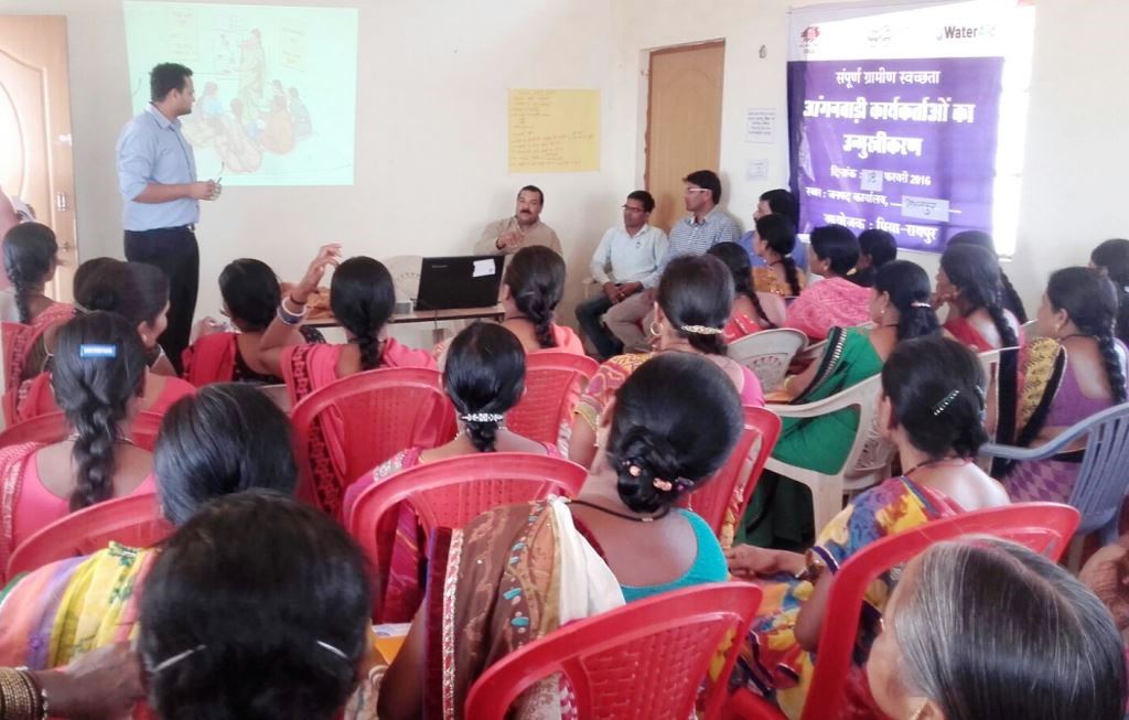 Keeping this in mind PRIA organised one day’s orientation programmes for the Anganwadi workers that are placed in various Gram Panchayats of Abhanpur and Dharsiva blocks of Raipur district in Chhattisgarh. These programmes were organised on 18 and 19 February, 2016 to build capacities of Anganwadi workers in relation to key provisions made for promotion of cleanliness and hygiene under Swachh Bharat Mission. In all 155 Anganwadi workers were trained during the two training programmes. Along with the Anganwadi workers the Presidents of the Janpad Panchayats, Chief Executive Officers, Lady Supervisors also attended these training programmes.