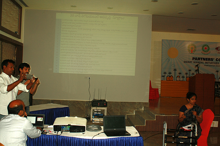 To build a collaborative and conducive working environment for partnership, a multi-stakeholder partners consultation was organized in Vishakapatnam on 4 May 2016. The District Collector, sarpanches, gram panchayat and mandal chairpersons from Anandapuram mandal, heads of departments of key line departments in the district administration, representatives from the state government and SMART Andhra Pradesh Foundation, and selected sector and corporate partners in the district attended.