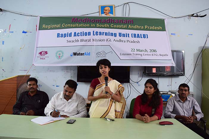 “I am looking forward to the next regional consultation. My GP would become ODF by that time and we will have a lot of experiences to share. In fact, the RALU team can visit our village for case study documentation.” Mr Nazer Ahmed, the sarpanch of Bavajipalem in Guntur District shared with the RALU team during “MEDHOMADHANAM”, the first Regional Consultation of Stakeholders’ on Rapid Action Learning Unit conducted on 22nd March, 2016 at Extension Training Centre, Bapatla in the south coastal region of Andhra Pradesh which included participants from the districts of SPSR Nellore, Prakasam, Guntur and Krishna.