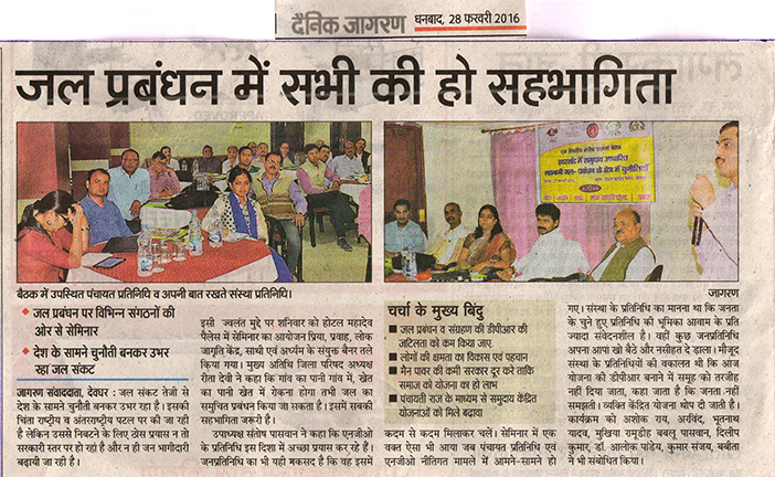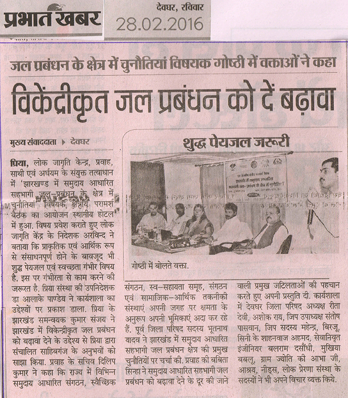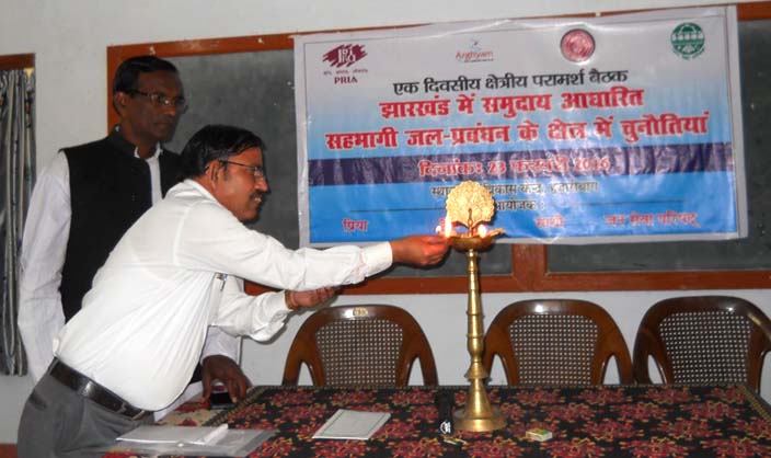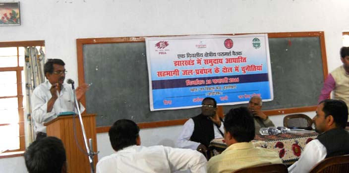 Communication gap between the panchayati raj institutions and the civil society organisation has been one of the important factors behind the poor growth of community based water management in Jharkhand. This was highlighted Priyanka Kumari, Member Zila Parishad (Hazaribagh). Priyanka Kumary who recently conferred the national award for her work on water conservation in Jharkhand shared that opportunities and platforms should be explored where the PRI members can sit with CSOs and can discuss about the development at the local level. She made these statements in the Regional Consultation on “Challenges in Community Based Water Manangement in Jharkhand” that was organised on 23 February, 2016 by PRIA in collaboration with Jan Sewa Parishad at Hazaribagh. In all 42 participants (5 women 39 men) from 7 districts of Uttari Chhota Nagpur division of Jharkhand attended this one day’s consultation, the first in this series. Two other consultations would be organised at Jamshedpur and Deoghar.
