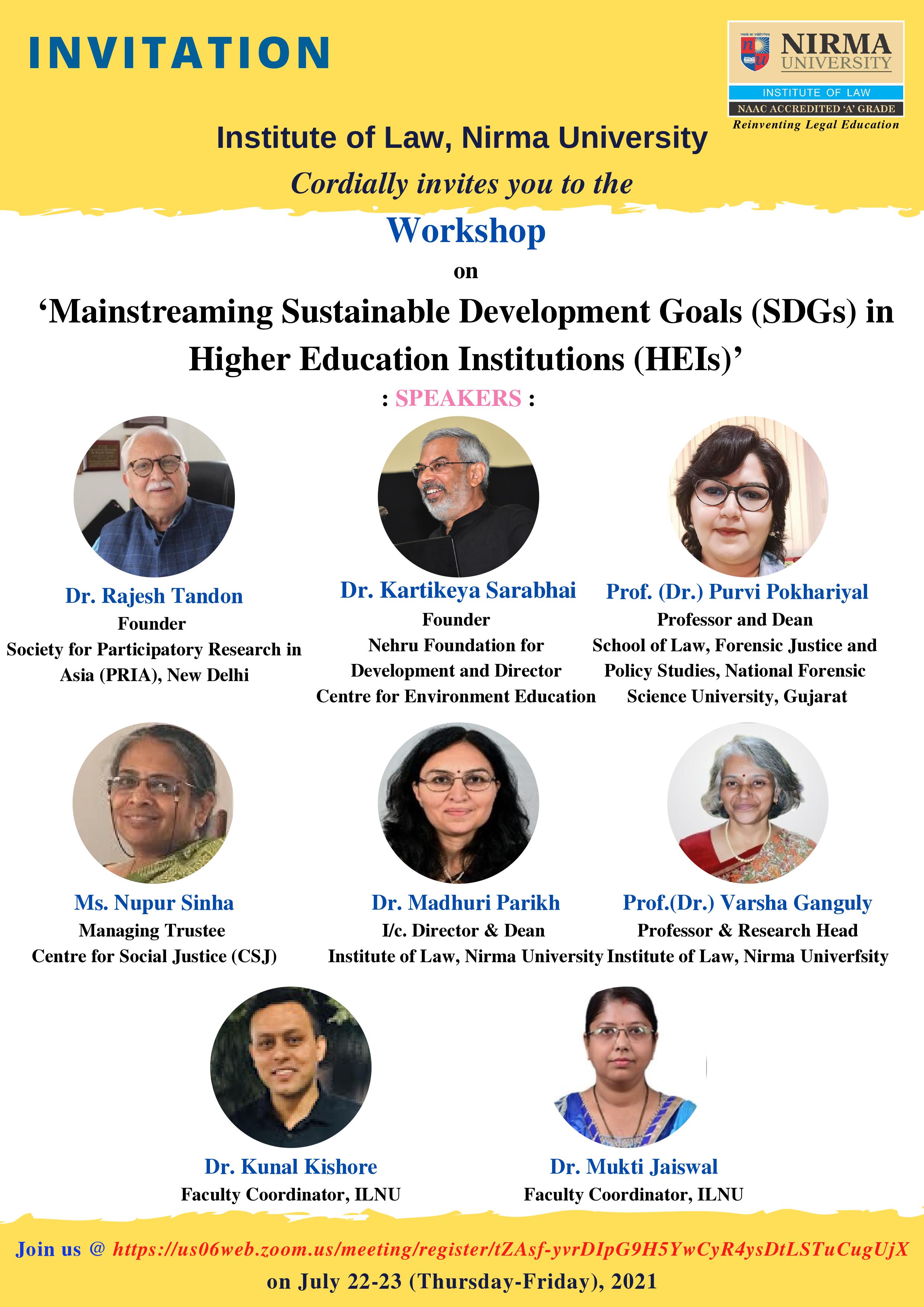 The workshop on Mainstreaming Sustainable Development Goals (SDGs) in Higher Education Institutions (HEIs), organised under the Socially Relevant Professional Readiness Programme (SRPRP) saw speakers from the world of law, policy, and social development share their insights on the following: