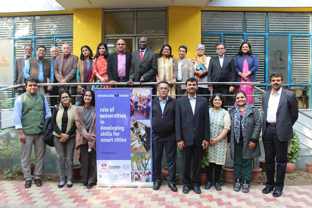 A roundtable workshop was organised to discuss and promote the role of universities with regards to Smart Cities in India. This workshop is a part of the “Building Research Collaboration for Smart Cities” project, a multi-partnership research collaboration supported by the Global Challenges Research Fund (GCRF), UK and Scottish Funding Council. The workshop saw participation of leading researchers from the UK and India, including Dr. Srabani Maitra (Lecturer in Sociology of Education, University of Glasgow), Michael Osborne (Chair of Adult & Lifelong Education, University of Glasgow), Dr. Ajith Kaliyath (Associate Professor, Sushant School of Art & Architecture), Dr. Kaustuv Bandyopadhyay (Director, PRIA) and Dr. Rajesh Tandon (Founder-President, PRIA and UNESCO Co-Chair in Community Based Research). Practitioners and policy makers from National Skill Development Council also attended the workshop.