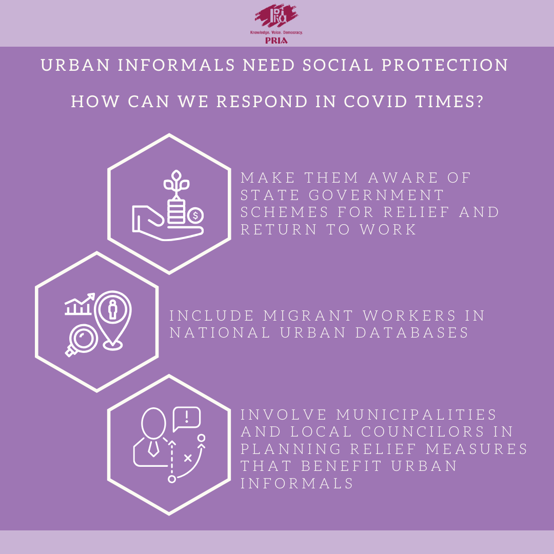 In this background, PRIA International Academy (PIA) and All India Institute of Local Self Government (AIILSG) jointly organised a Webinar on “Role of ULBs in Promoting Social Protection for Urban Informals Affected by COVID-19 Pandemic”. The webinar was held on Monday, 27 April 2020 between 11.00 am and 01.00 pm.