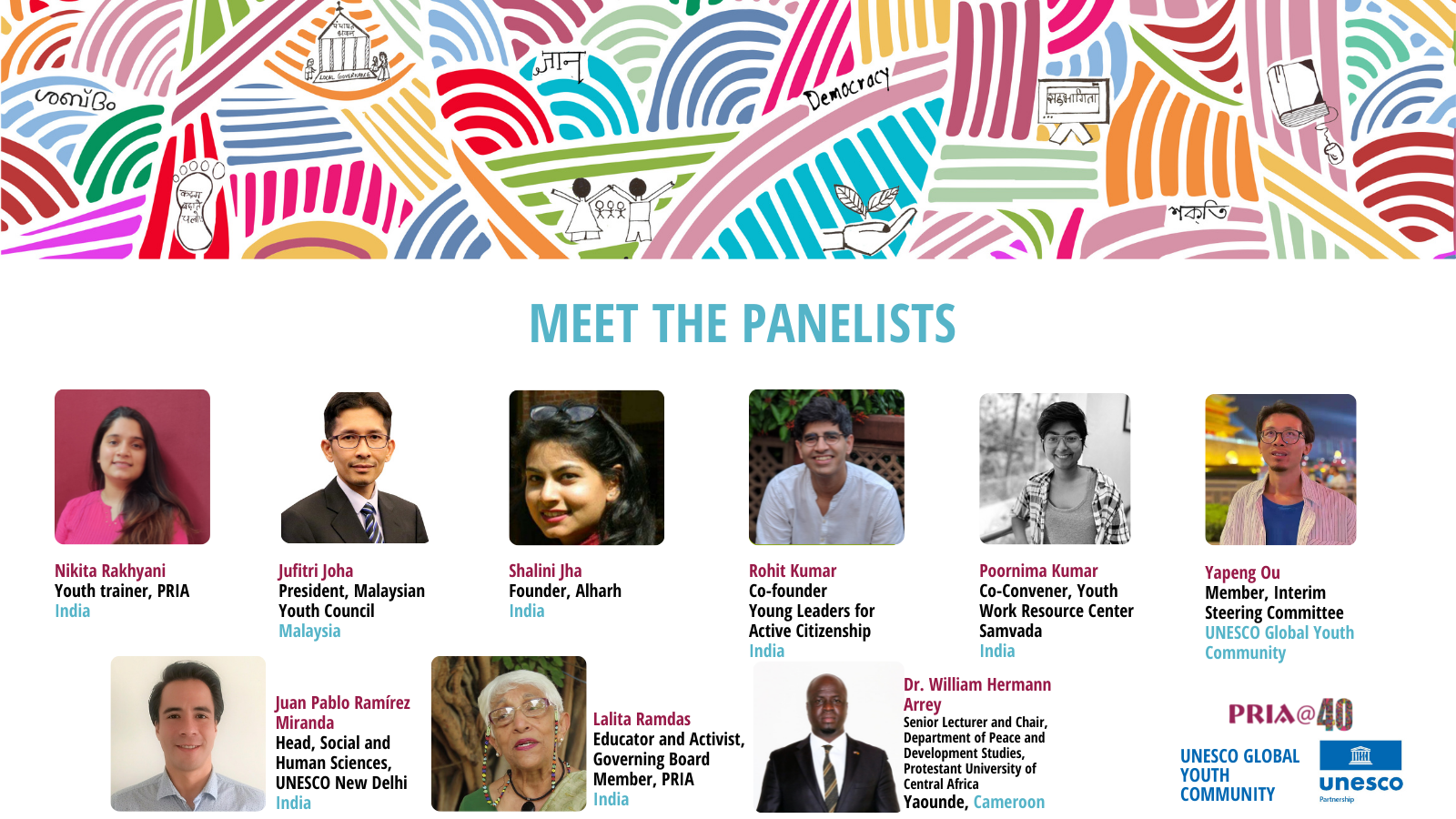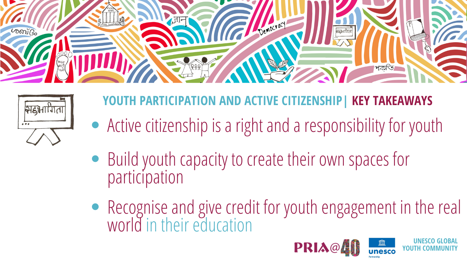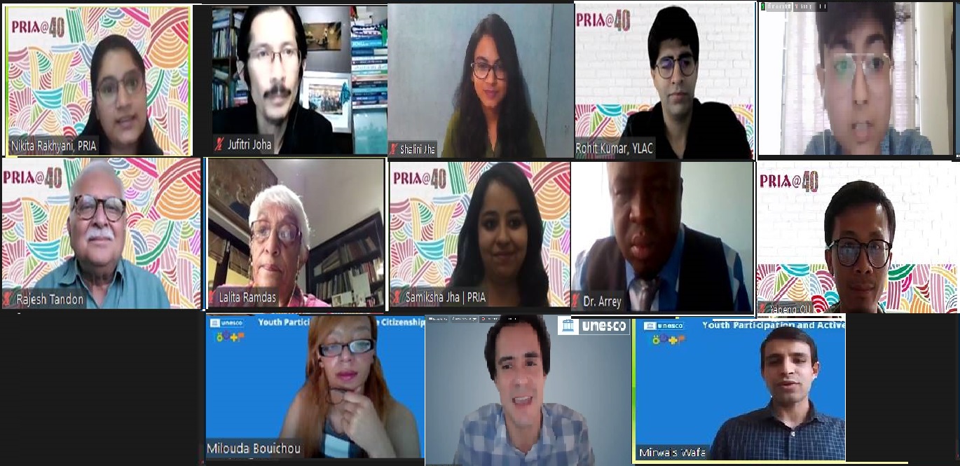 As part of these PRIA@40 conversations, PRIA convened a symposium in collaboration with UNESCO New Delhi Cluster Office and UNESCO Global Youth Community (GYC) on International Youth Day on August 12, 2021 to learn from others such strategies for learning active citizenship through youth participation that can be further encouraged.