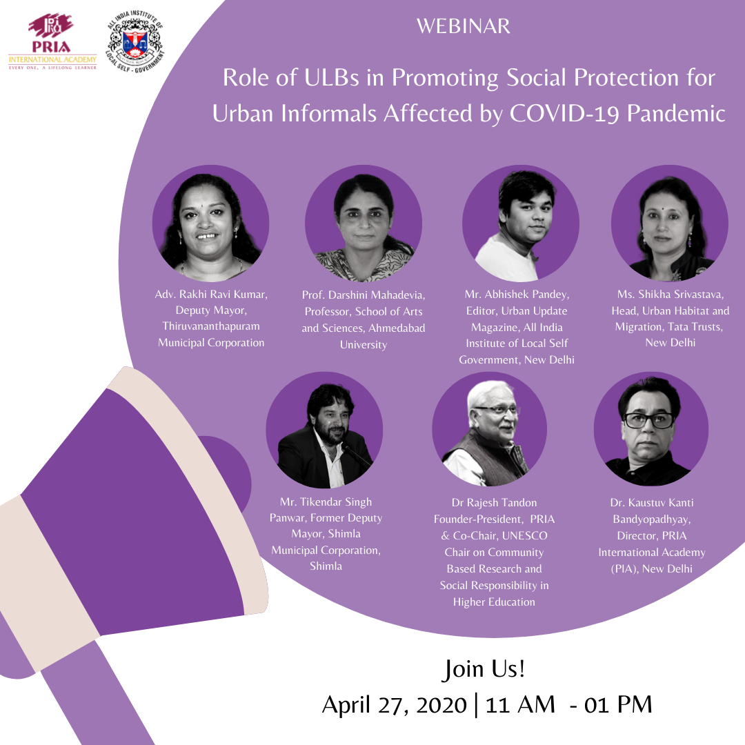 Webinar: Role of ULBs in Promoting Social Protection for Urban Informals Affected by COVID-19 Pandemic