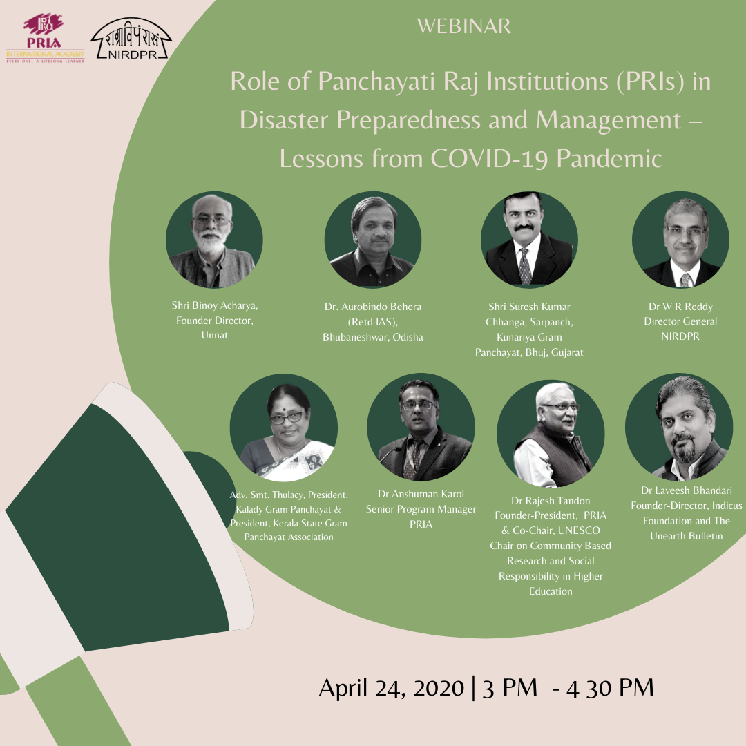 Webinar: Role of Panchayati Raj Institutions (PRIs) in Disaster Preparedness and Management – Lessons from COVID-19 Pandemic