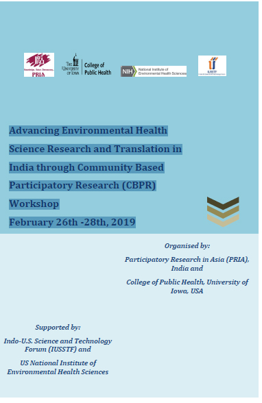 This international workshop is co-hosted by Participatory Research in Asia (PRIA), India and University of Iowa, USA with support from Indo-US Science and Technology Forum and the US National Institute of Environmental Health Sciences.