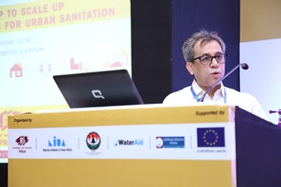 He remarked that SDG 17 clearly talks of multi stakeholder partnership and the conference itself is an evidence of the same, where representatives from academia, CSOs, ULBs and donor agencies have partnered together to hold an event to discuss the urban sanitation challenge in the state of UP. Finally, he requested the audience to not to restrict this partnership to this conference but take it back into their practice such that it is visible across UP.