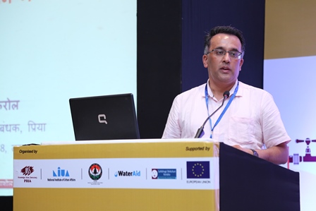 Giving a background of PRIA’s work on enhancing participation, he shared that 74th Constitutional Amendment Act (74th CAA) came to force to bring effective devolution to ULBs. For long, planning in the context of urban development was expert driven. However, there is an imperative to shift to participatory planning for city wide sectoral planning especially in sanitation services. He further stressed that strengthening citizen voices is crucial for enabling participatory urban planning. In order to make urban governance and development policies participatory and integrate the voices of urban poor in such policies, it is essential to enact it through multi stakeholder capacity building with a focus on building organisation and awareness among the urban poor.