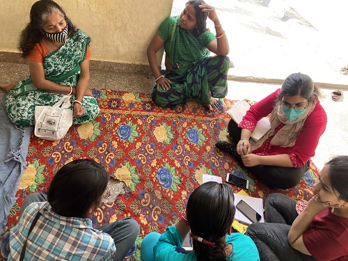 Women domestic workers organised an hour-long visioning exercise to discuss the function and scope of the Resource and Support Centre in Harijan Basti, an informal settlement in Gurugram’s Phase 5 area. They held a brainstorming session about the social enterprise they want to set up in the Resource and Support Centre. The purpose of the discussion was also to ask women about their expectations from the Resource and Support Centre.