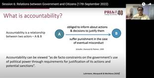 This week's session titled, ‘Relations between Government and Citizens’ was the first session facilitated as part of the Social Accountability module. The session aimed to inform fellows about the types and benefits of social accountability, and rights associated with social accountability. It was facilitated by Dr. Kaustuv Kanti Bandyopadhyay, Director at PRIA, Head of PRIA International Academy (PIA) – the academic vertical of PRIA, and leading expert on citizen participation and social accountability in the urban space.