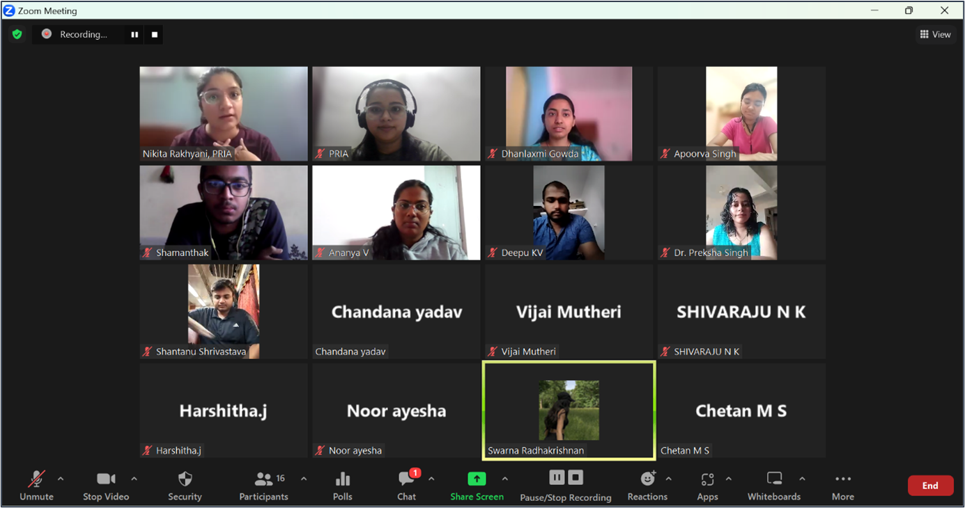 In the final session of the Self module, titled "Diversity of Self," Ms. Nikita Rakhyani, Lead-Youth Engagement at PRIA (Participatory Research In Asia), conducted a session centered around Goffman's theory of Self. The aim was to help fellows explore the different facets of themselves when they interact with different people.