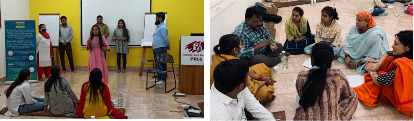 Participants: A total of 26 coalition members participated in the workshop, of whom 20 were women and girls. Moreover, the group constituted of diverse stakeholders from within the coalition, including members of youth groups (8), school management committee members (4), anganwadi workers (1), members of local women’s groups (5), local NGO members (7) from the community of Seemapuri as well as some members from state and national level NGO’s (1).
